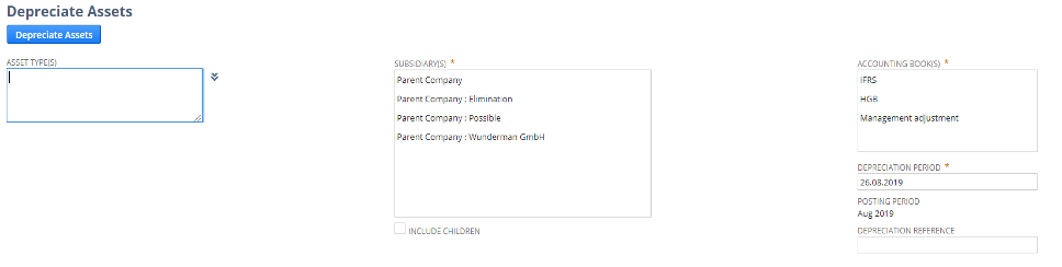 | DEPRECIATION PERIOD | The frequency of the depreciation is only show. It is derived from depreciation method. | |